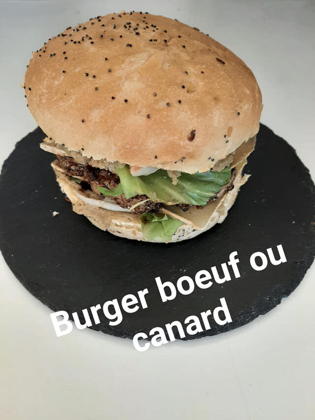 Et pour régaler vos papilles, nous vous proposons, nos burgers bœuf et canard avec nos frites fraîches
