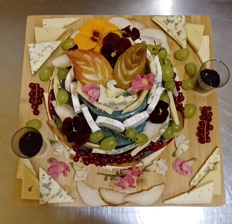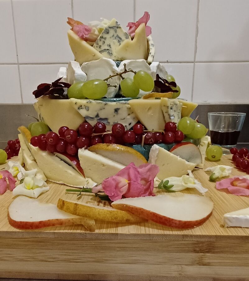 À l'occasion d'un anniversaire fait le week-end dernier, nous avions en commande en plus de l'axoa, des plateaux de fromages (à voir dans la galerie) et une, nous avons aussi fait une nouveauté : une pièce montée de fromage